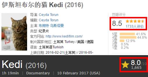 而我们猫奴也十分埋单,豆瓣评分妥妥的升至8.5的高分,IMDB也获得了8.0的好评…