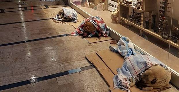 面对此,城中的民居和商铺纷纷成为了这些流浪猫、流浪狗们避风港湾!